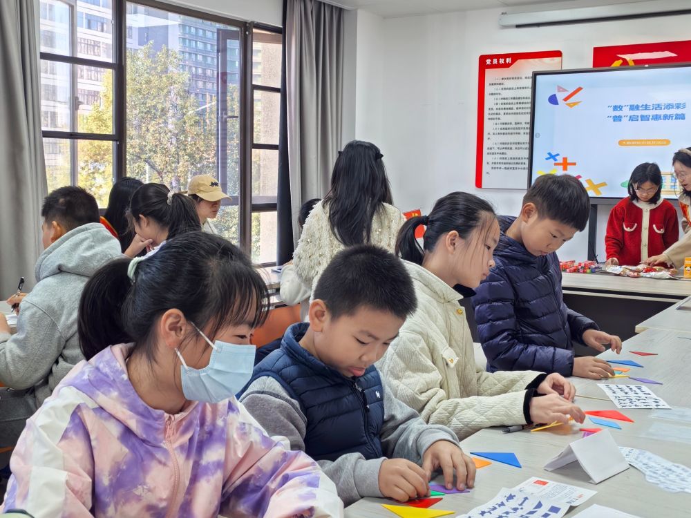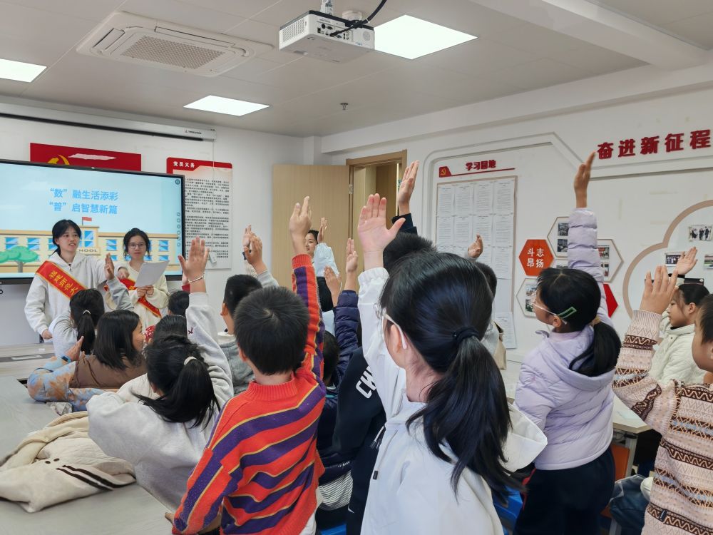 活動設置“數語巧猜”、“尋數辨奇偶”、“撲克牌與24點”、“七巧板趣味拼圖”四個互動分區(qū),將大數據生活應用、數據分類、邏輯運算與可視化理念融入趣味游戲,小朋友們在支部成員的引導與講解下輕松愉快地感知大數據基礎原理?;迎h(huán)節(jié)告落后,支部成員協同社區(qū)工作人員組織小朋友依序就座,隨后舉行大數據知識快問快答挑戰(zhàn),現場小朋友們踴躍舉手、爭相作答,氣氛熱烈有序。