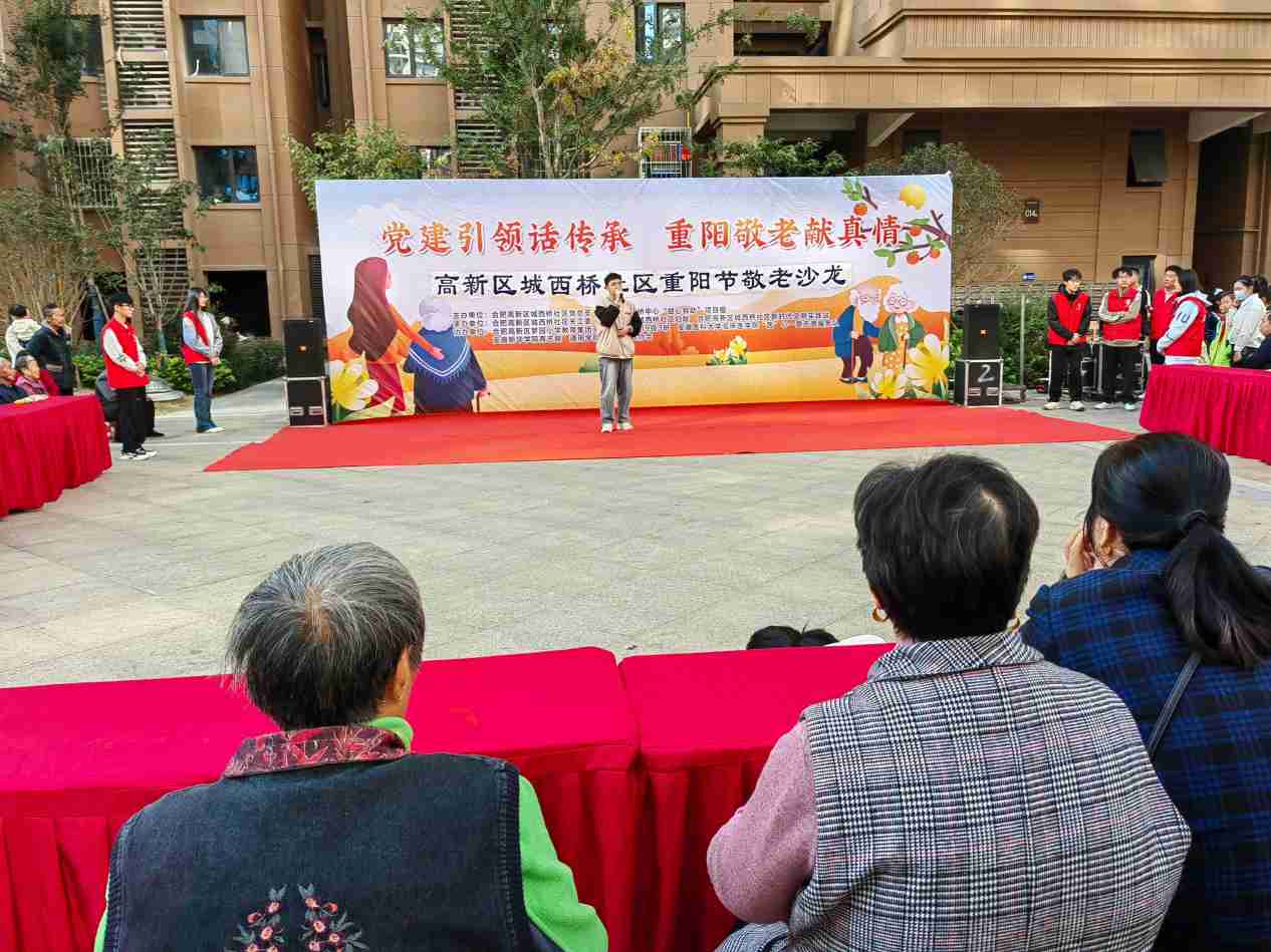 2023年10月21日,在志愿服務部部長陶文昊以及副部長的帶領(lǐng)下,13位志愿者共同協(xié)助活動的完美開展。上午八時,志愿者到達現(xiàn)場并幫助搭建平臺和擺放桌椅,老年居民入座后志愿者發(fā)放敬老禮品?;顒诱介_始按照古風舞、武術(shù)表演、健身操、《聽我說謝謝你》大合唱、舞劍、歌曲《十年》、歌曲《暖暖》、歌曲《說唱百家姓》等12種表演節(jié)目依次進行,這些表演給老年人日常生活增添了許多樂趣,樂在其中。