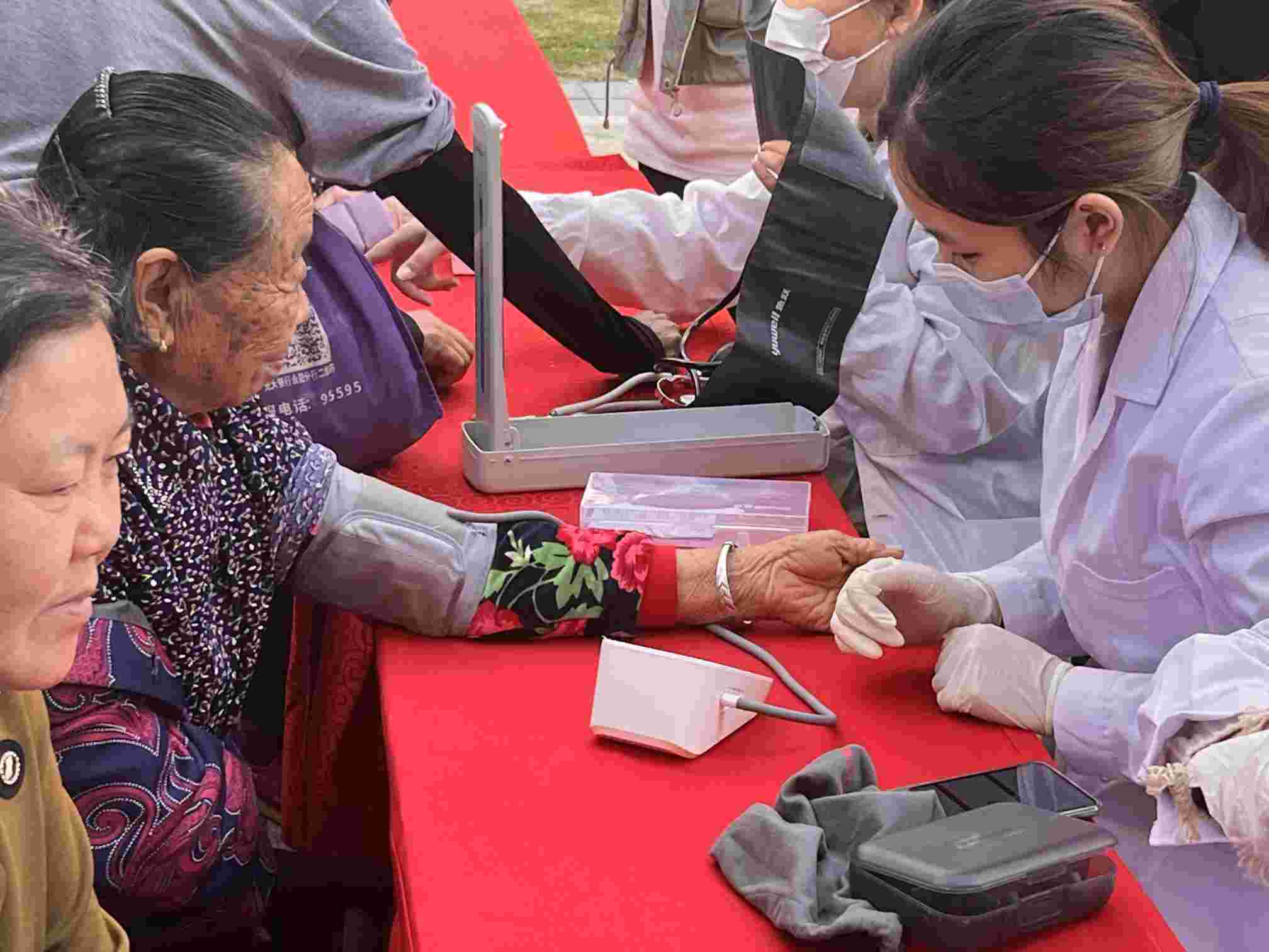 即使表演結(jié)束,咱們志愿者也沒有閑著,而是立即開展我們團隊的優(yōu)勢所在:社區(qū)義診,測血糖和測血壓的場所也立即被老年人所充滿,我們在乎老年人的身體狀況,也讓他們了解自己的身體狀態(tài),從血糖血壓的測試結(jié)果我們可以看出大部分老年人身體健康,極少數(shù)部分人有高血壓或高血糖。