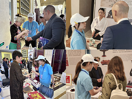用西語講述中國故事 向世界展現(xiàn)非遺魅力論壇期間,新洲竹雕、湖北青磚茶、麥稈畫等湖北非遺文化展位吸引了眾多外賓的目光。西語班志愿者積極為外賓們進(jìn)行翻譯介紹,激發(fā)了他們對湖北非遺文化的濃厚興趣。