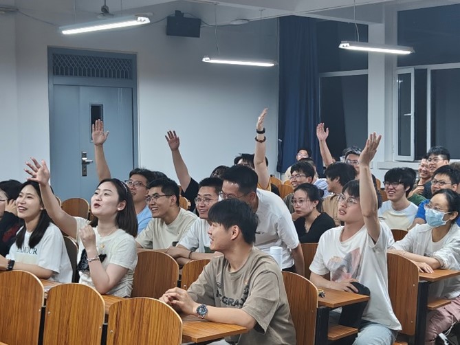 交流互動(dòng)環(huán)節(jié)中,呂晨睿、李忠航,錢學(xué)堯等同學(xué)們的發(fā)言彰顯了青年在國(guó)家發(fā)展中的重要角色,他們深刻理解青年所肩負(fù)的歷史責(zé)任和時(shí)代使命,號(hào)召青年群體積極融入國(guó)家現(xiàn)代化的宏偉藍(lán)圖,以熱忱和實(shí)際行動(dòng),為國(guó)家的繁榮昌盛貢獻(xiàn)青春力量。
