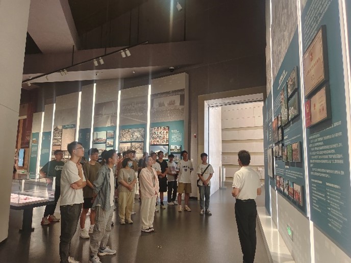 活動(dòng)當(dāng)天,同學(xué)們于9:50分準(zhǔn)時(shí)集結(jié)于博物館服務(wù)臺(tái),隨后在講解員王永彬的引領(lǐng)下,參觀了《保定故事》第三展廳。展廳內(nèi),五四運(yùn)動(dòng)的激情和留法勤工儉學(xué)運(yùn)動(dòng)的壯志深深感染了同學(xué)們,歷史與青年奮斗的故事在這里交織,喚起了每位團(tuán)員的愛國(guó)情懷,激發(fā)了他們投身國(guó)家發(fā)展的熱情。