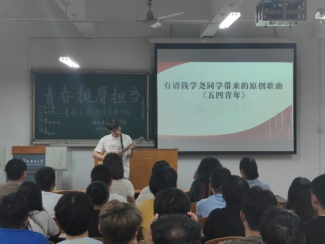 此外,錢學(xué)堯同學(xué)的原創(chuàng)歌曲《五四青年》以其優(yōu)美的旋律和深情的歌詞,傳遞了青年的活力和愛國(guó)情懷,贏得了在場(chǎng)團(tuán)員的熱烈掌聲。